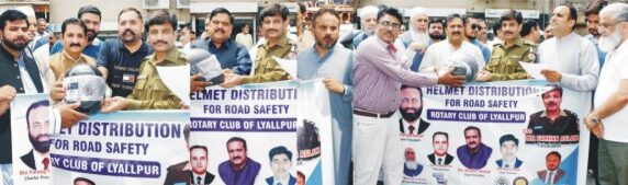 روٹری کلب آف لائلپور کے زیر اہتمام موٹر سائیکل سواروں میں فری ہیلمٹ تقسیم