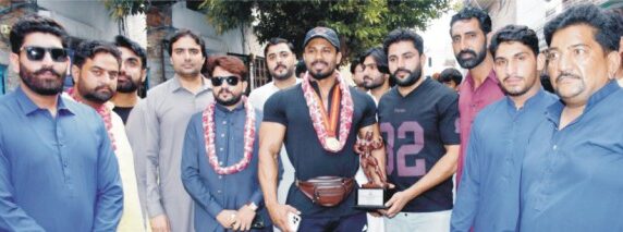 گولڈ میڈل جیتنے والے تن ساز کا پرتپاک استقبال