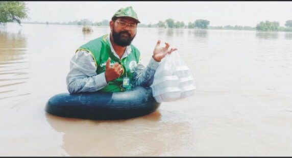 متاثرین سیلاب میں کھانا اور خشک راشن تقسیم