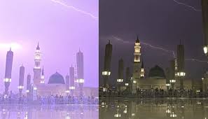 مدینہ منورہ میں بارش’ گنبد خضریٰ پر روح پرور مناظر