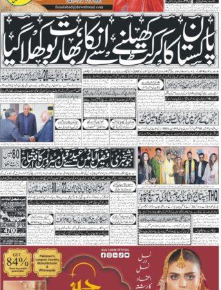 رواں سال رشتہ ازدواج میں منسلک ہو جائوں گی’ زباب رانا ابرار کا سن رائزر لیڈز سے معاہدہ۔ گواسکر کا تعصب کھل کر سامنے آ گیا منی لانڈرنگ’ ہنڈی مافیا کیخلاف کریک ڈائون کا فیصلہ (اداریہ) 8ماہ کے دوران آئی ٹی برآمدات میں 49کروڑ ڈالر اضافہ عید پر شہریوں کا مالی استحصال کسی صورت نہیں ہونے دینگے،CTOناصر جاوید رانا