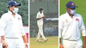 کرکٹ میچ کے دوران کھلاڑیوں نے ماسک پہن لیے