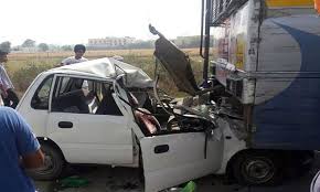 تیز رفتار کار کی سڑک کنارے کھڑی ٹرالی سے ٹکر