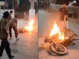 موٹر سائیکل ٹکرانے سے آگ بھڑک اٹھی،3افراد زندہ جل گئے