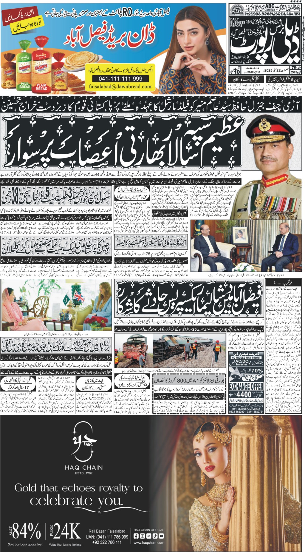 فیلڈ مارشل کا بھارت اور طالبان کو دوٹوک پیغام (اداریہ) ندیم عباس قمر ایک سچے، نڈر اور با کردار صحافی تھے اقوام متحدہ کو عطیات کی شدید قلت کا سامنا قوموں کی ترقی میں تعلیم کی بہت اہمیت ہے زرعی یونیورسٹی میں بلیوں کے مقابلہ حسن کا انعقاد